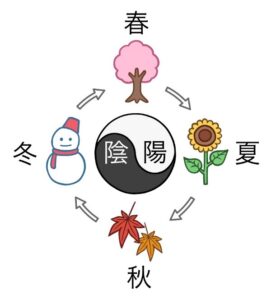季節の移り変わりは身体や精神活動にも影響します。夏から秋、冬にかけて、中医学では自然界のエネルギーが陽から陰に移り変わっていくと考えます。(陽は活動的な状態、陰は静かな状態のイメージです。)陽気は無くなるわけでなく、陰の内側に隠れてお休みし、春頃になると出てきます。このとき身体でも同じような現象が起こり、活動的な状態がやや静かになります。そのため秋頃は何となく気力体力が落ちていると感じるかもしれません。冷えや血行不良になりやすく、下痢、痛み、しびれ、なんとなく眠い、やる気が起きない状態となりやすいです。元々身体の陽気(エネルギー)が不足している方はその傾向が強く出やすくなります。普段から陰(身体の体液)が不足している方は、陽気がうまく隠れられず、ほてり、眠りが浅くなる、カッカしやすい、寝汗をかく、血圧上昇などの症状が出やすくなります。陰陽はホルモンバランスとも関連しており、更年期などで女性ホルモン、男性ホルモンのバランスが乱れる時も、陰陽の症状から診ていくことが多いです。食生活から陰陽を補うことは少し難しいので、症状があれば漢方薬で身体の調和をとりましょう。