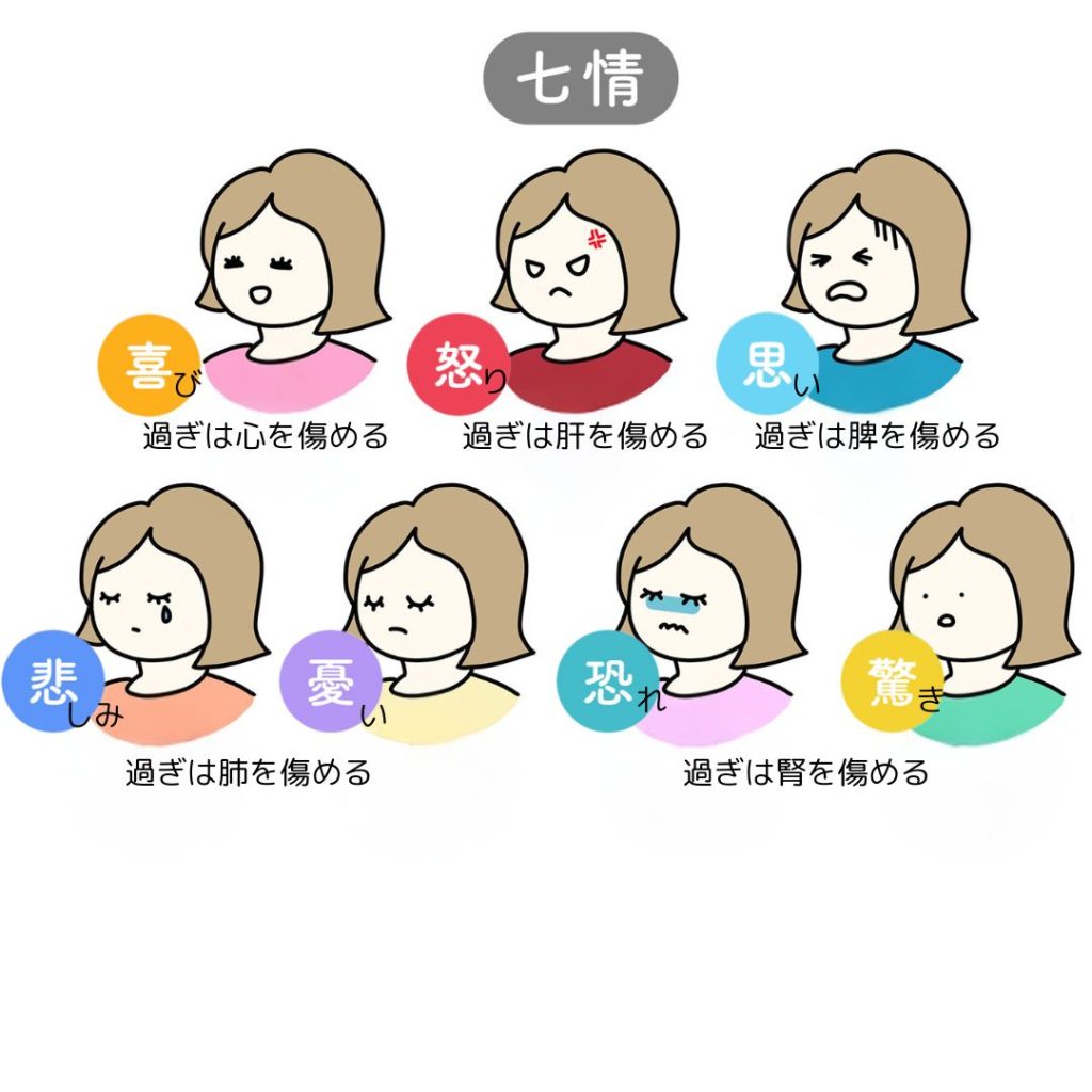 中医学には「七情」の考え方があります。「七情」は「喜・怒・思・憂・悲・恐・驚」の7つの感情です。